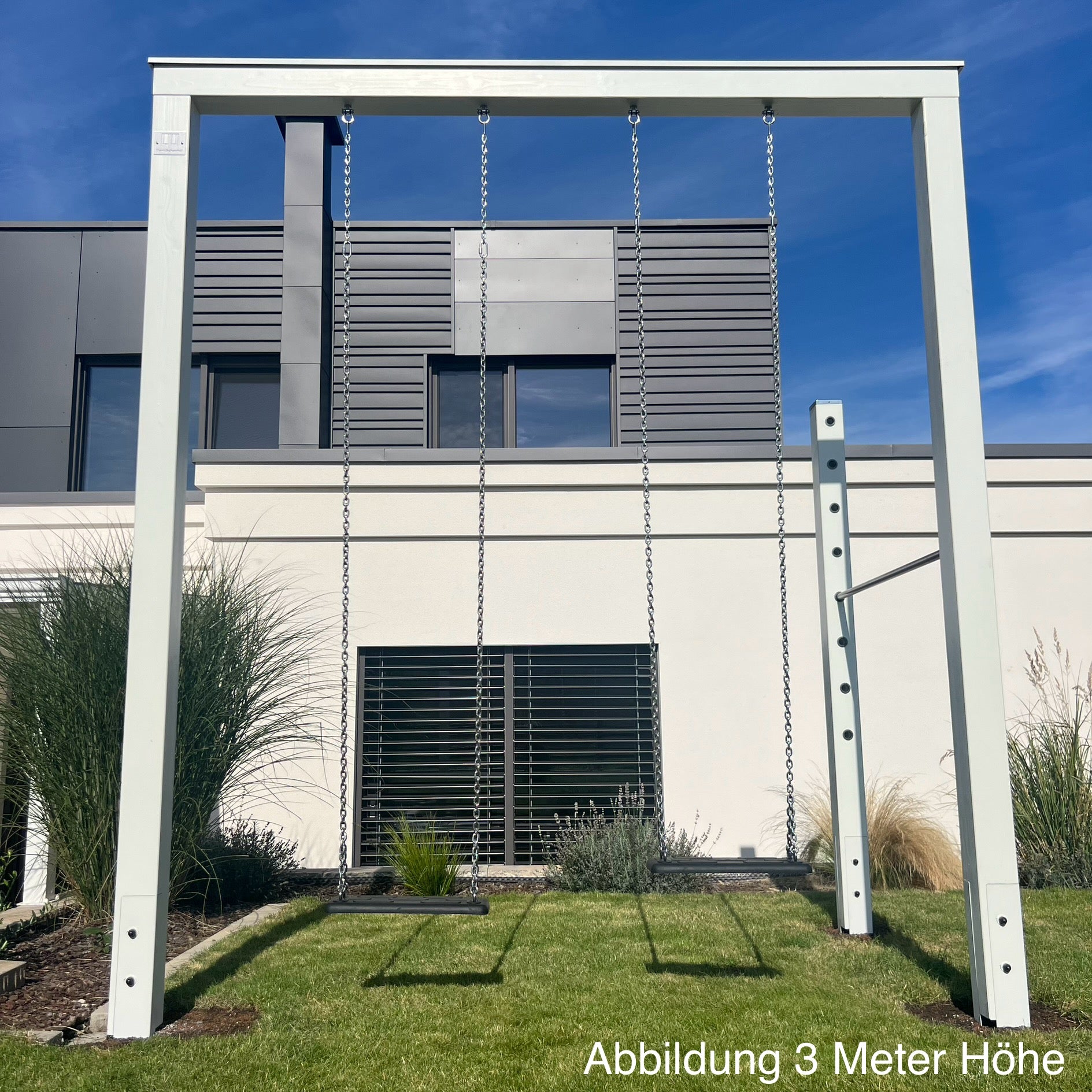 Gestalte deine Schaukel ganz nach Wunsch! Wähle zwischen Einzel- oder Doppelschaukel, Holz- oder Rohrrahmen und ergänze Reckstangen. Alle Maße sind individuell anpassbar – so flexibel wie nie zuvor!